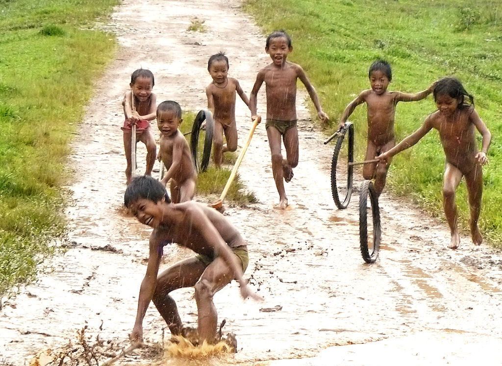 Children playing After Round OneThe bread and butter gameRolling Tyre in the mud